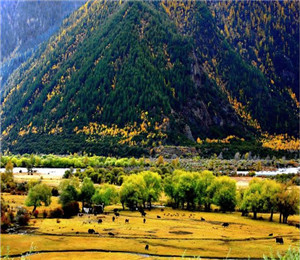 8、鲁朗国际小镇—鲁朗在藏语意为“龙王谷”,又称“神仙居住的地方”,冰川、高山、峡谷、草甸、林海、河流、湖泊等各种景观并存,拥有世界顶级自然资源景观
