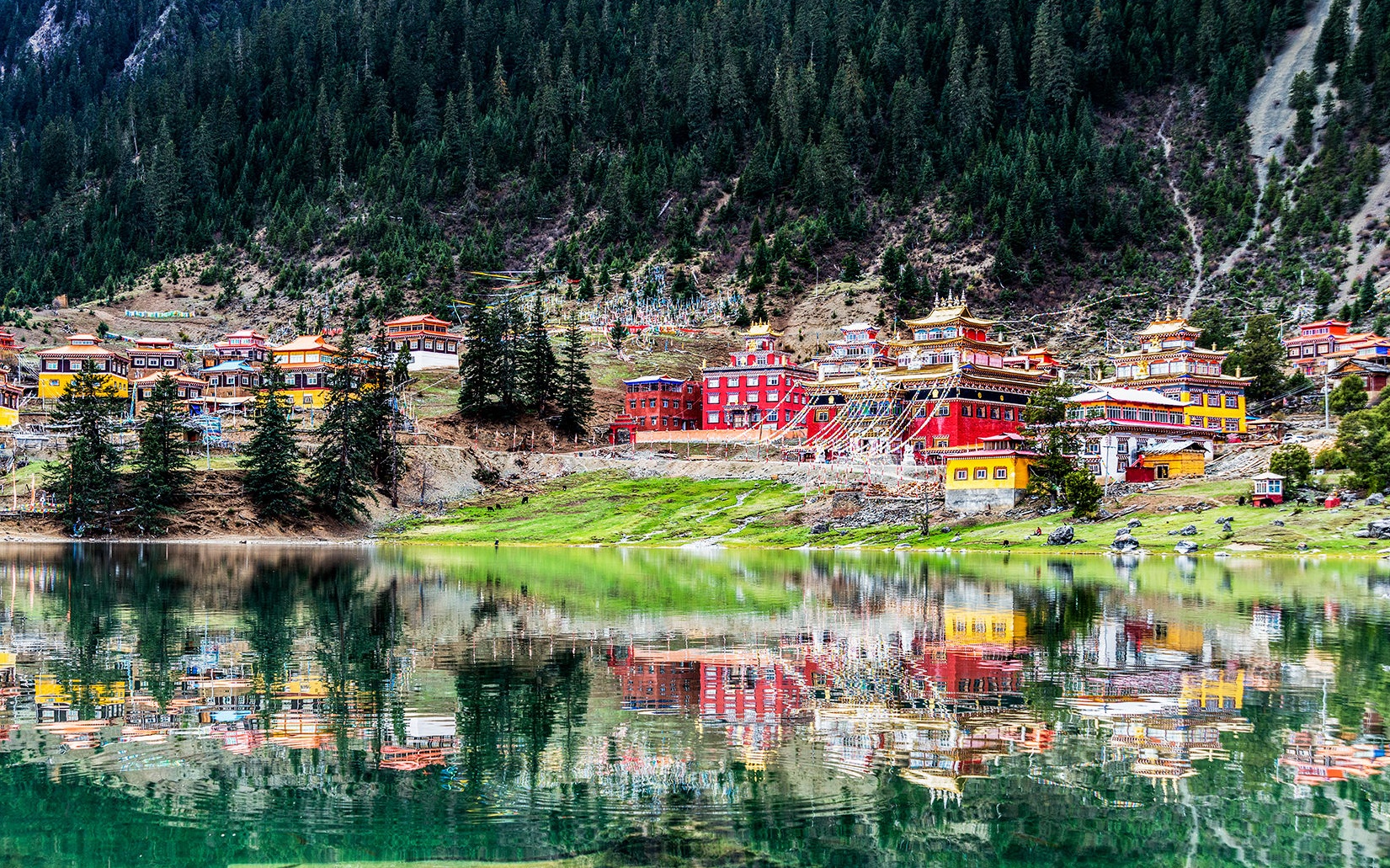 措卡湖:被誉为“人间仙境,九天瑶池”,在当地被称为错卡海子,藏语意为乱石丛中的黑色海水,是一个淡水湖泊,湖面面积约3平方公里,意为“绿宝石”;措卡湖那碧玉般的湖水晶莹剔透,万花筒般地收集着蓝天、白云、绿树、青山、红寺庙的身影,仿佛整个世界都被她揽入怀里,一番加工这后,又以更加迷人的姿态释放出来,令人耳目一新。