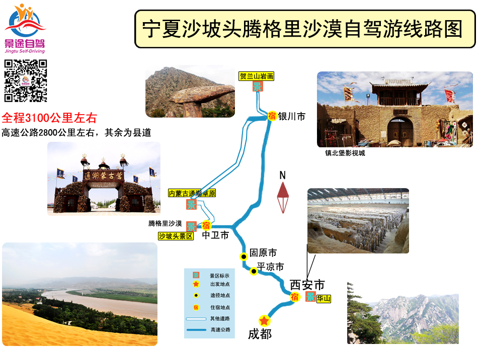 银川市——镇北堡影视基地——贺兰山岩画——银川 (100Km)