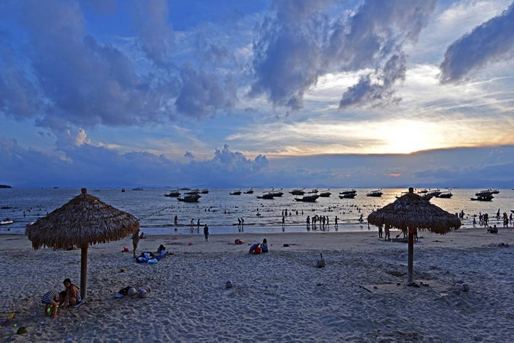 【惠州巽寮湾】是粤东数百公里中海水最洁净的海湾之一。除了一类的海水及沙滩沙质外,海滩上软细洁白的海沙含沙量高达99%。有"天赐白沙堤"美誉。巽寮各处的奇周到怪石,富有海角天涯的景色。特别是磨子石,是天作地造一座大型的石磨,两块重达百吨的巨石相叠而成,旁边有各种各样形态奇特的石群,象满地米、石一样,有鬼斧神工之妙,是巽寮石景观的典型代表。傍晚可自行前往沙滩拍摄日落海岸线的美景。