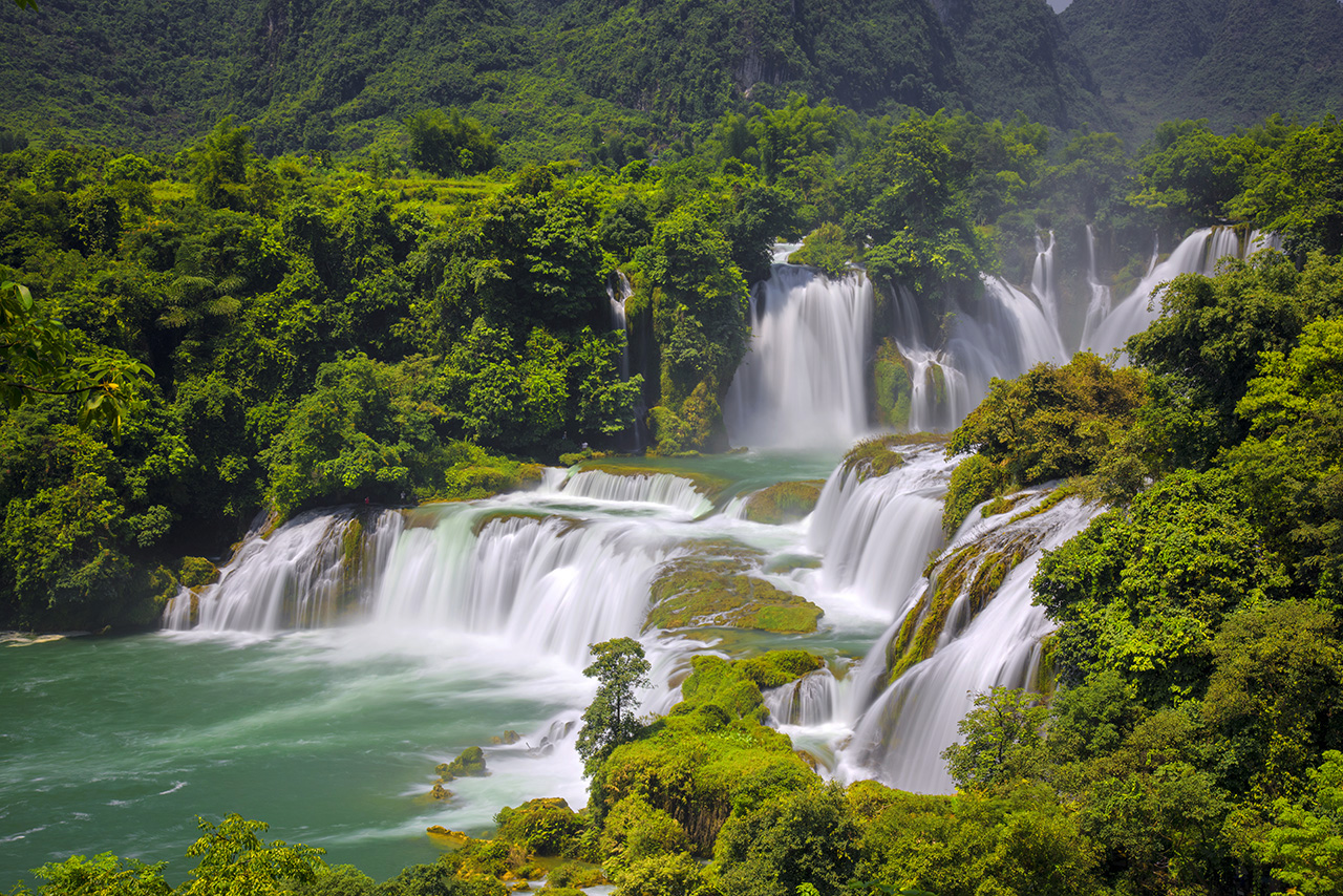 德天大瀑布横宽达120米,落差70米,纵深60米,三级跌落,气势磅礴。如果从越南的板约瀑布到德天瀑布的跨度算起的话,整个大瀑布将宽达200米左右。