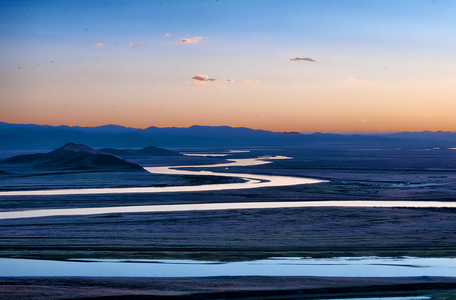 早上从九曲黄河第一湾出发、经红原县城、到达月亮湾、一路走来、风光迤逦、经长江黄河分水岭查真梁子(4350米)、然后到达古尔沟、入住酒店。