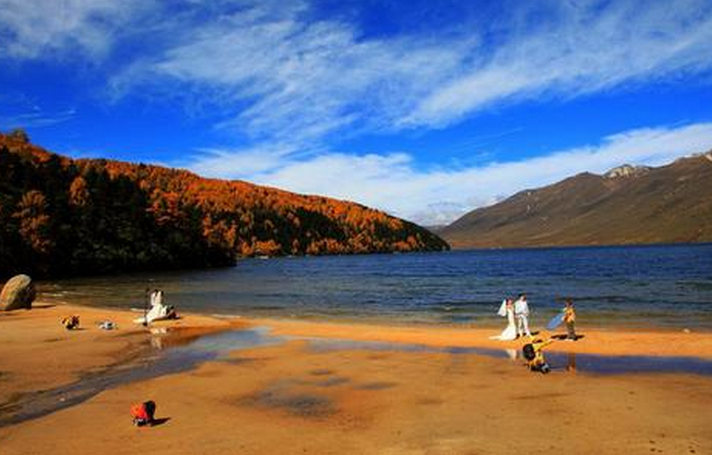 早餐后前往有小九寨之称的木格措风景区,(又叫野人海)。木格措风景区由杜鹃峡、赛马坪、七色海,药池沸泉、木格措和红海草原六个小景区组成,木格措湖景色一日多变,清晨坦面无垠的湖面静如镜面,倒映着雪峰和群山;午后波涛滚滚,涛声如雷震撼山谷;傍晚夕阳西斜时湖面金光灿烂夺目。动静交替的湖水,日变万千。在此还可观赏到“猛虎卧山”、“观音镇海”等奇妙山景。在不同季节还可欣赏“双雾坠海”、“木格夕照”、“木格涨潮”和迭瀑飞泉等云、雾、霞、水奇观;在珍珠滩可享受沙浴、日光浴之乐。