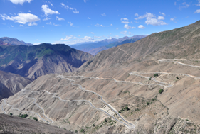 从左贡出发,经4400米的邦达(由此可分道北往昌都,西至拉萨,并入川藏北线,去纳木措湖),藏东唯一的机场就建在开阔的邦达草原,是世界上海拔最高的民用机场。翻越横断山最大的天险——业拉山(4839米),经著名的99道拐,车在公路上以之字形盘旋曲折前进,进入川藏公路拐弯最多的路段。下行到怒江边,抵达八宿,八宿藏语意为“勇士山脚下的村庄”,海拔3910米。住八宿。