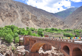 从左贡出发,经4400米的邦达(由此可分道北往昌都,西至拉萨,并入川藏北线,去纳木措湖),藏东唯一的机场就建在开阔的邦达草原,是世界上海拔最高的民用机场。翻越横断山最大的天险——业拉山(4839米),经著名的99道拐,车在公路上以之字形盘旋曲折前进,进入川藏公路拐弯最多的路段。下行到怒江边,抵达八宿。汽车沿秀美的藏东南山谷和高山草甸前行,远眺雪山和冰川。继续前行,进入然乌沟,沟内两壁是巨大的冰川,欣赏沟内终年不化,千奇百怪的拉古冰挂、冰川。