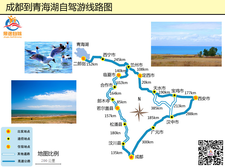 友情提示:临夏到倒淌河镇为高速公路(360公里),倒淌河镇到青海湖二郎剑景区为国道109线。