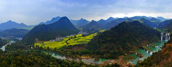 坝美——世外桃源,四周群山环抱,别有洞天的幽静秀美,八座山峰一字排开如同水墨画卷;