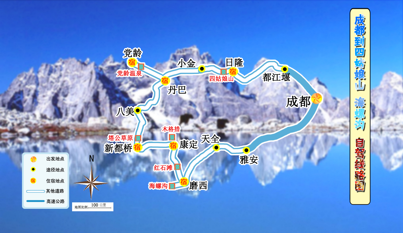 餐含:午餐、晚餐 宿:四姑娘山镇