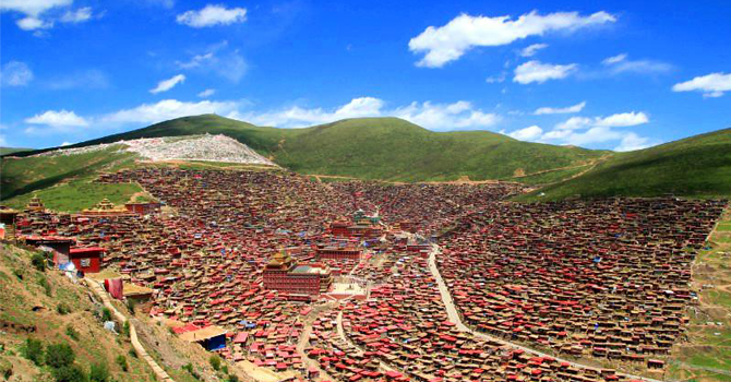 色达——一个没有尘世繁琐的世界,色达山河一片红五明佛学院——世界上最大藏传佛学院之一